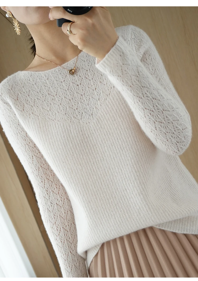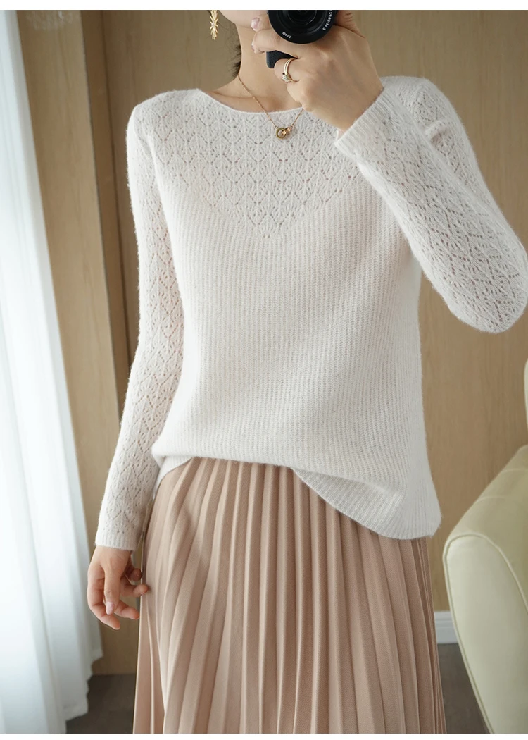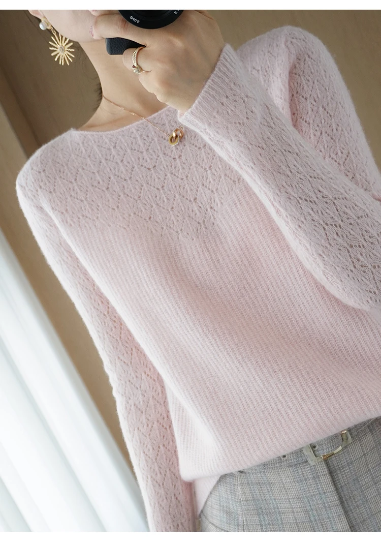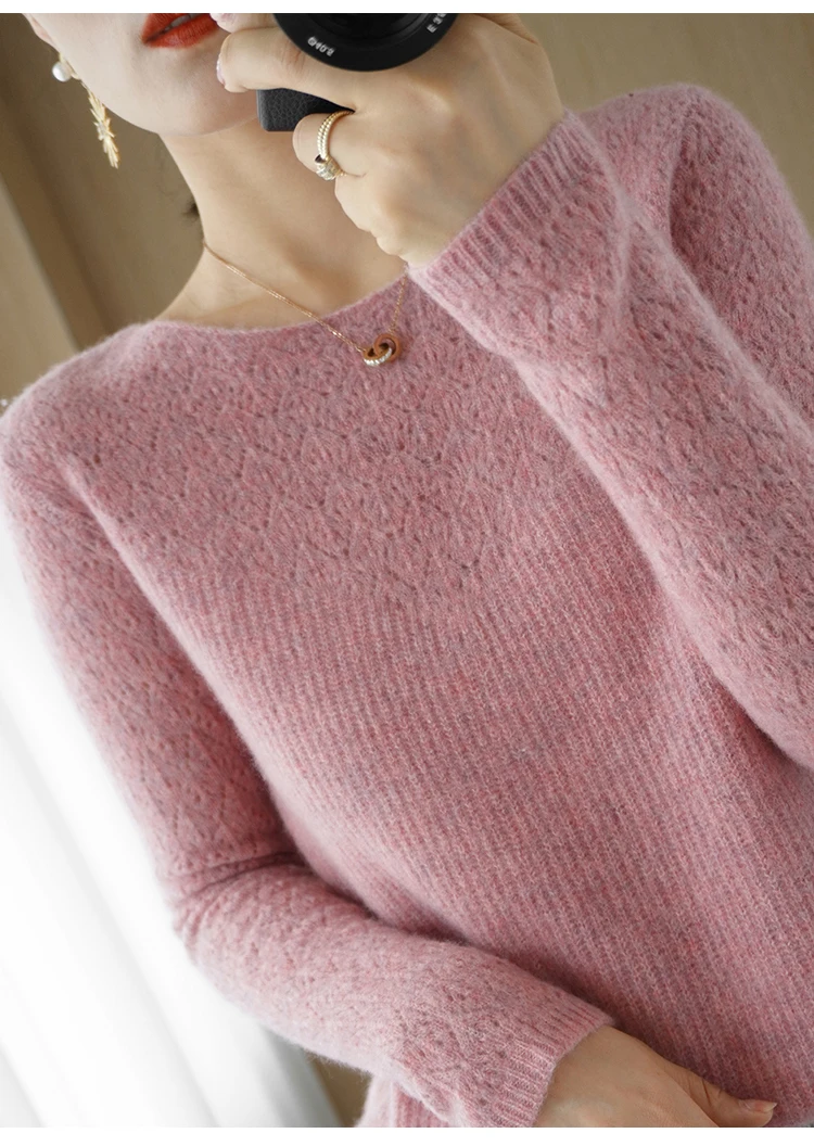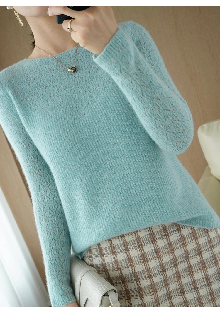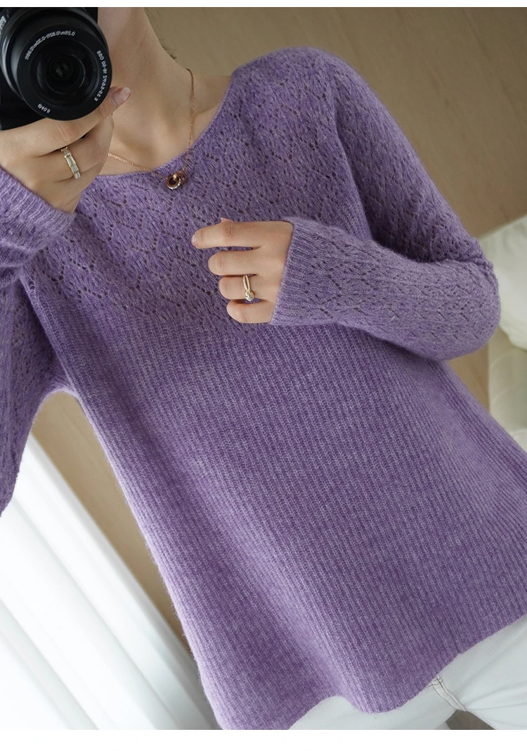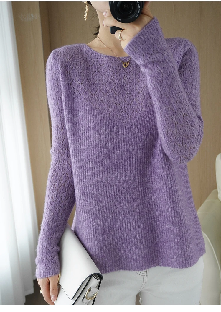Wool Cashmere Sweater Pullover, Long Sleeve, Loose-Fit, Solid Colors and Crew Neck